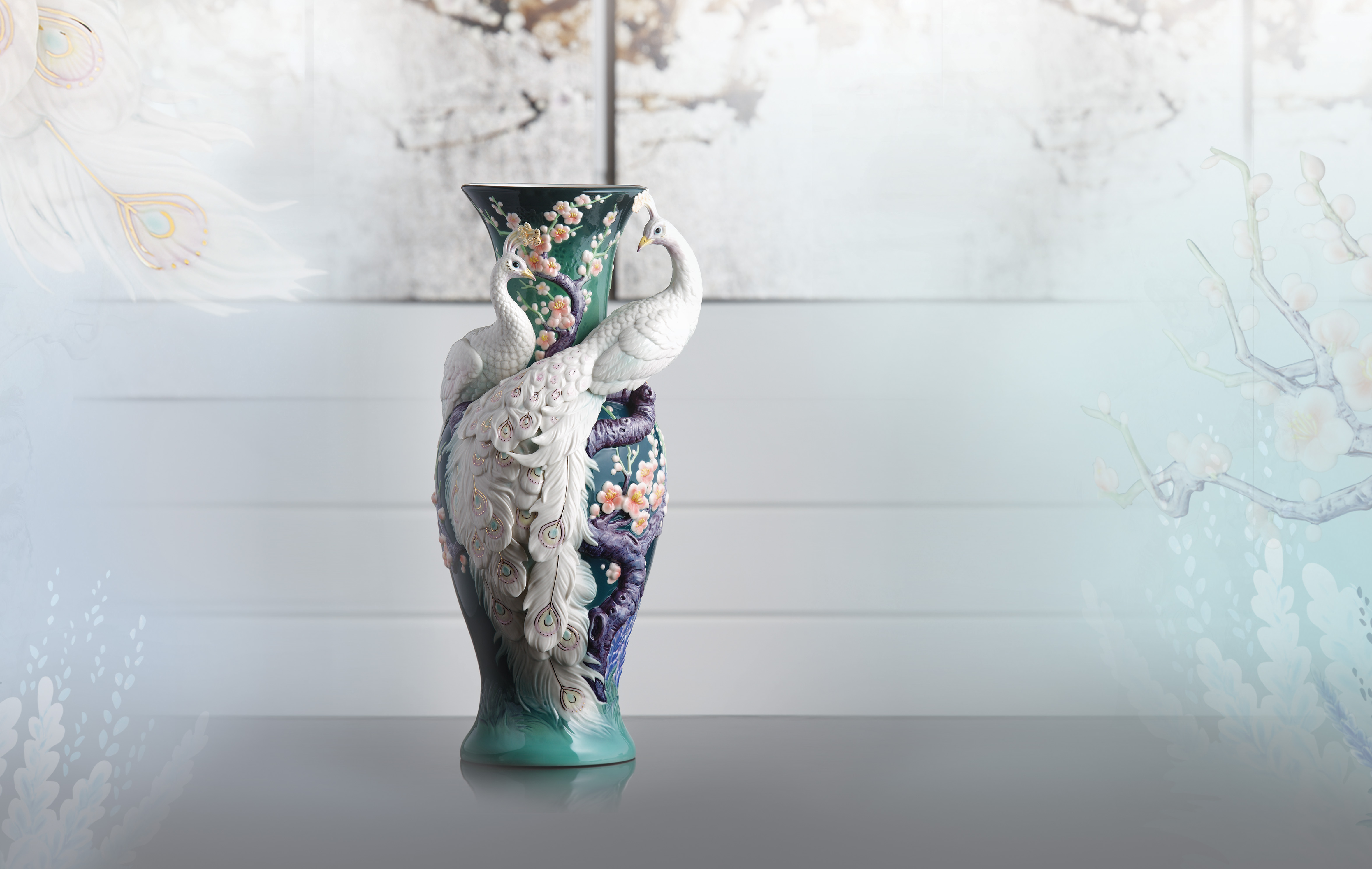 Symbolizing everlasting happiness, this appealing collectible features rare white birds – a symbol of mercy and blessings in Buddhism – which bring good luck and wealth, as well as pink plum flowers heralding peace and blessings for generations to come.