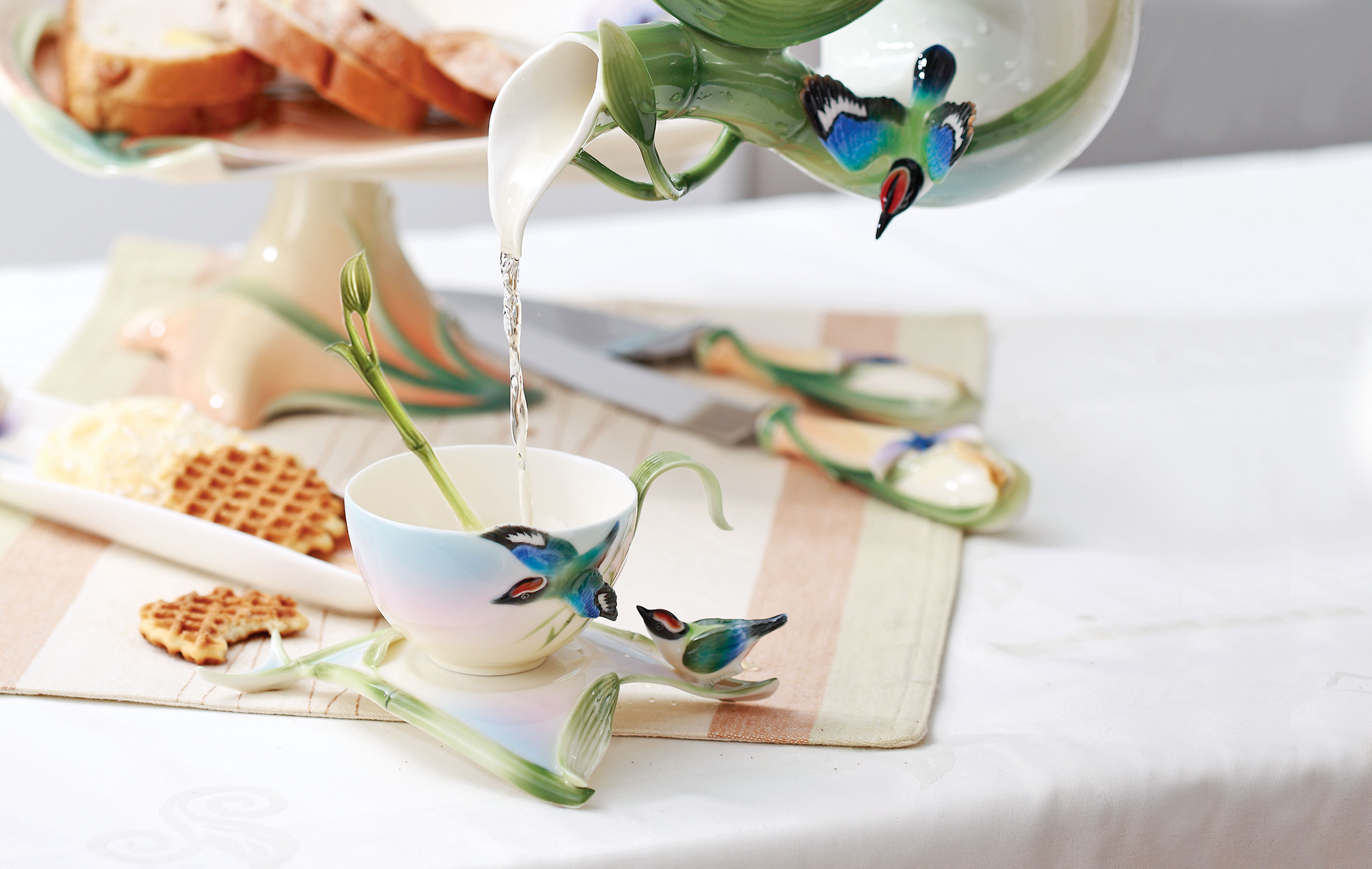 One of Taiwan's national treasures, the Blue-winged Pitta, is an endangered species. In an effort to raise awareness, James Tsai designed a collection that focuses on this vulnerable species. He illustrated a beautiful fable about this radiant sapphire creature, depicting a blue-winged fairy living joyously in the bamboo, singing and flying, ever after.