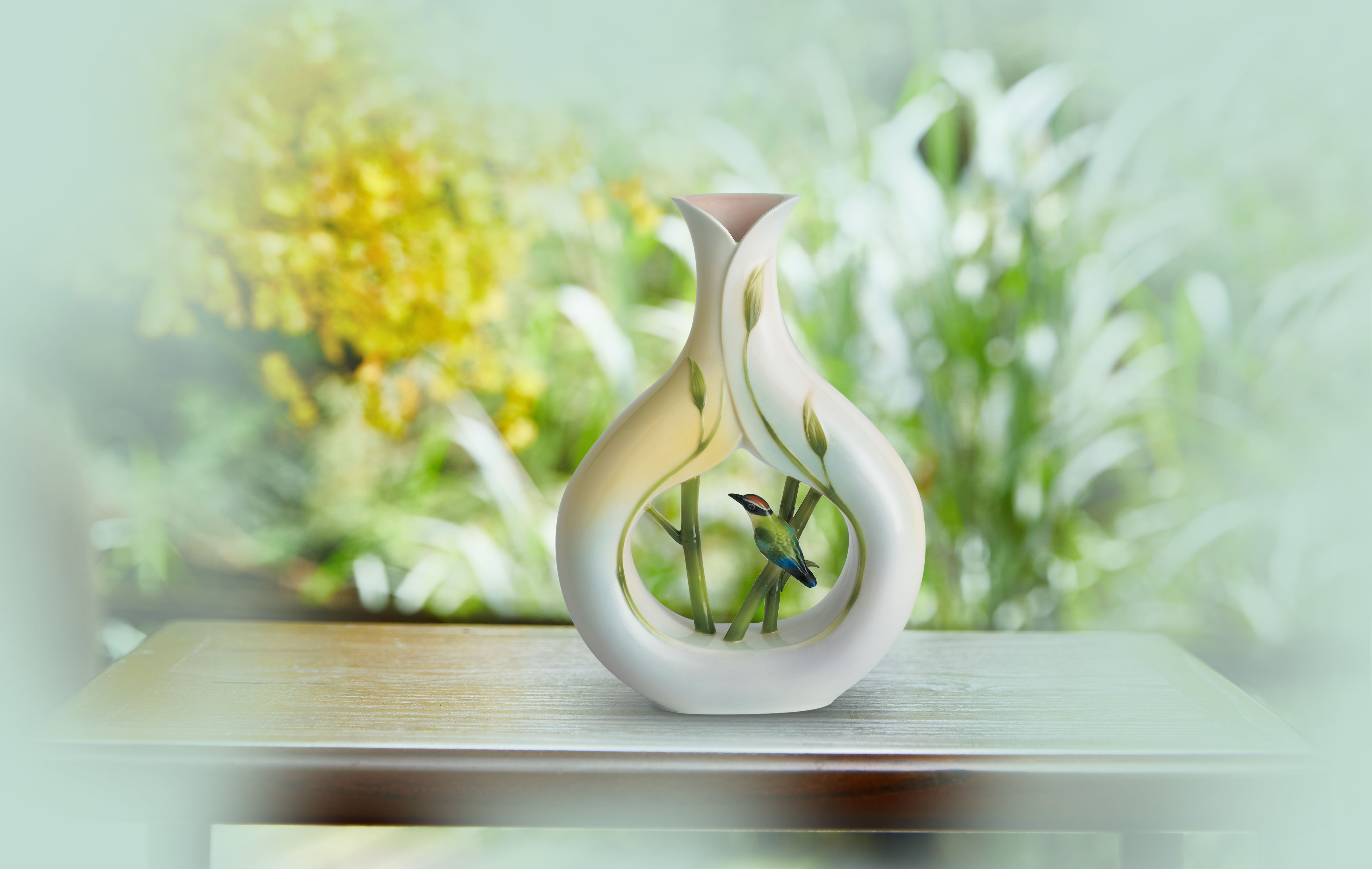 One of Taiwan's national treasures, the Blue-winged Pitta, is an endangered species. In an effort to raise awareness, James Tsai designed a collection that focuses on this vulnerable species. He illustrated a beautiful fable about this radiant sapphire creature, depicting a blue-winged fairy living joyously in the bamboo, singing and flying, ever after.