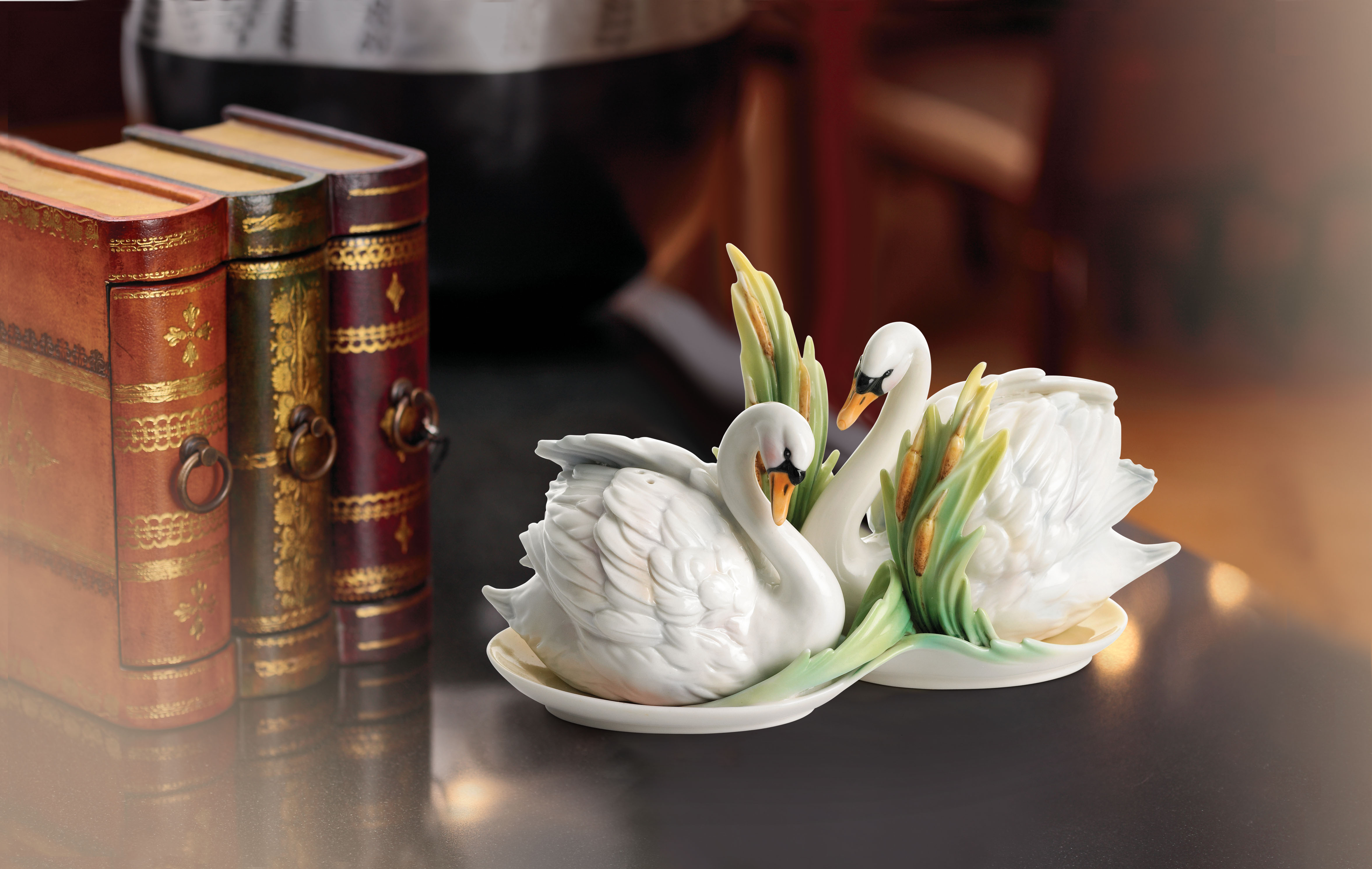 The Swan is the most elegant and graceful bird in nature Often found in pairs, they move majestically across the water They play, cuddle, and whisper under the clear sky They share their deep affections for each other in this beautiful moment