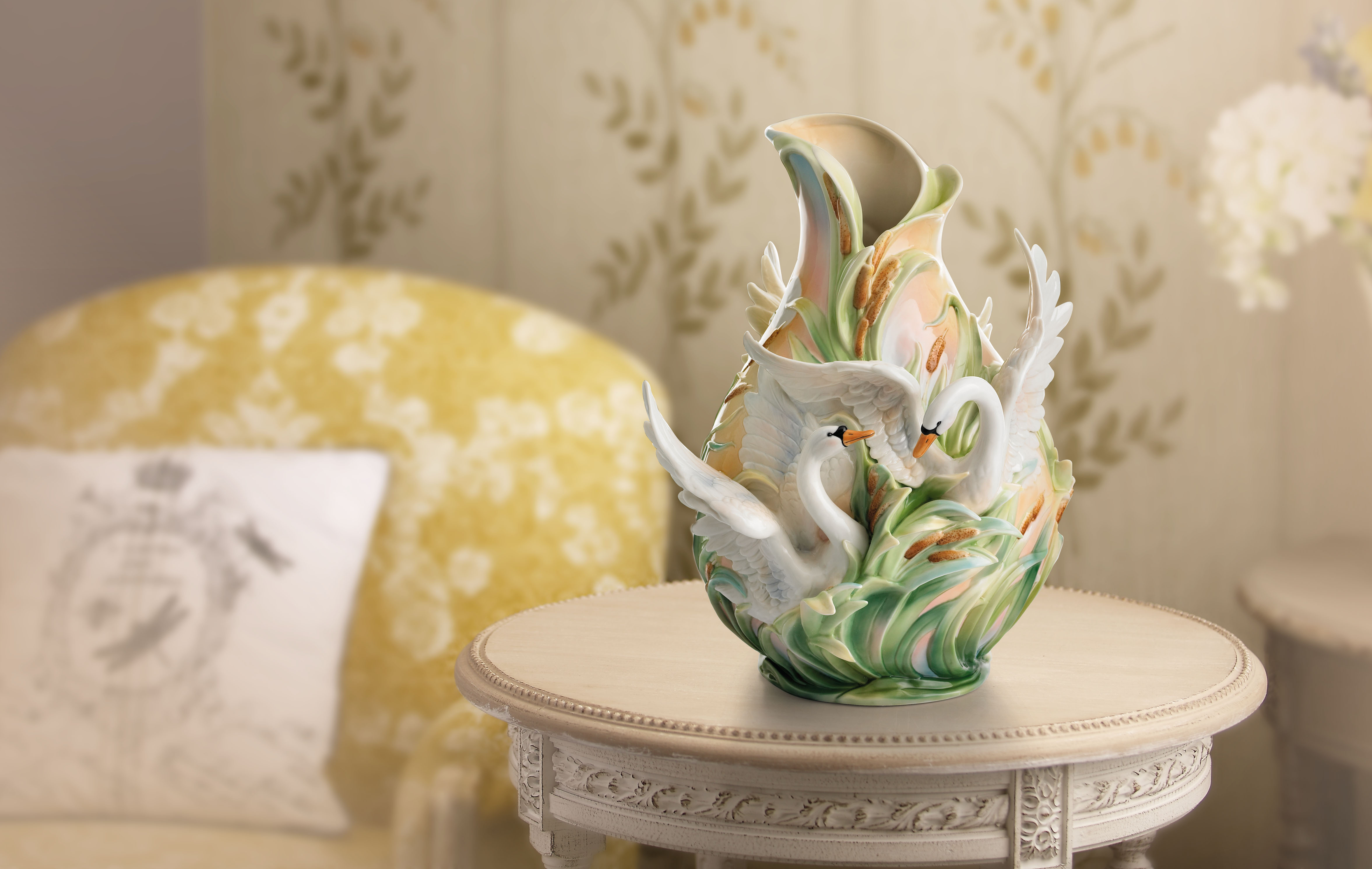 The Swan is the most elegant and graceful bird in nature Often found in pairs, they move majestically across the water They play, cuddle, and whisper under the clear sky They share their deep affections for each other in this beautiful moment